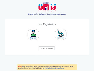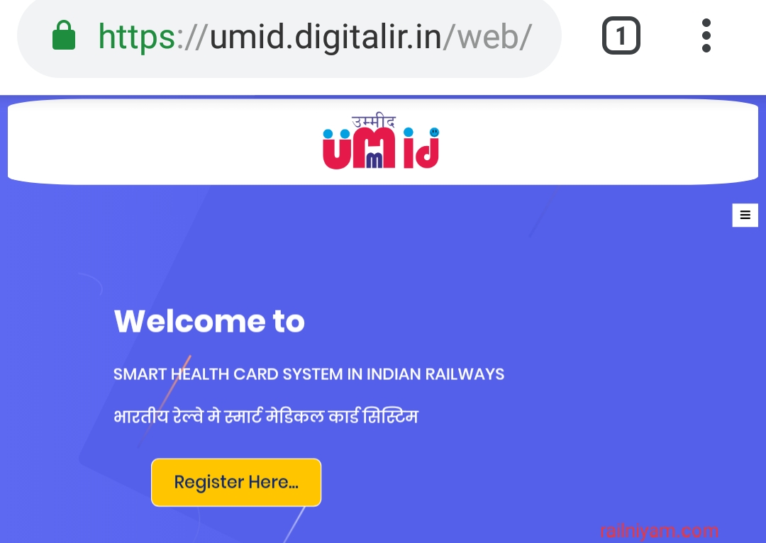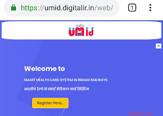 Umid (उम्मीद) unique medical identity card के तहत भारतीय रेलवे द्वारा स्मार्ट मेडिकल कार्ड बनाये जा रहै हैं umid रेलवे मेडिकल स्मार्ट कार्ड कर्मचारियों तथा पेंशन भोगियो दोनो के लिए बनाये जाने है। इसलिए आपको सबसे पहले umid की वेबसाइट रेजिस्ट्रेशन करना होगा